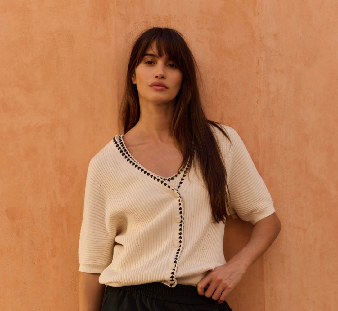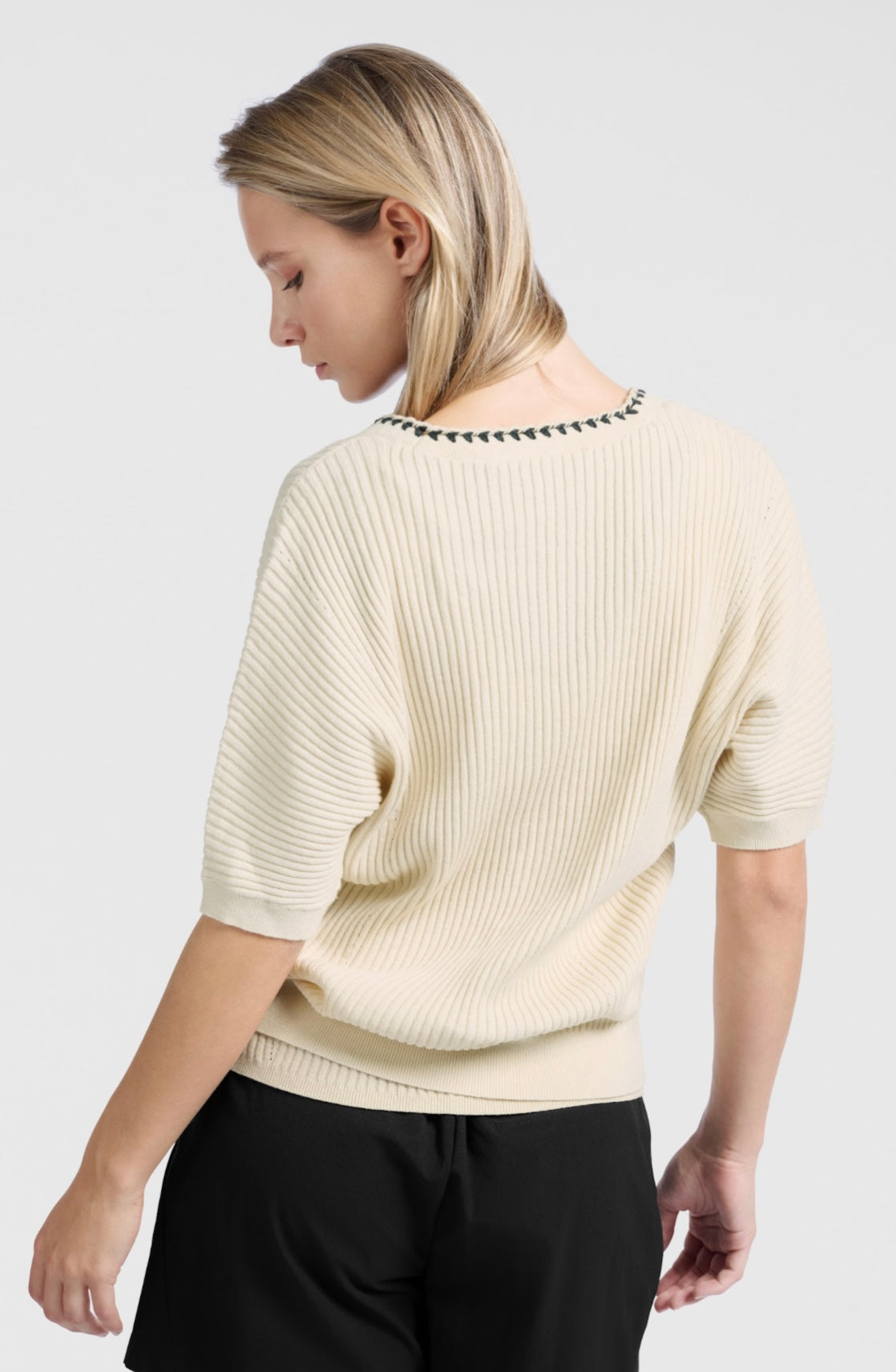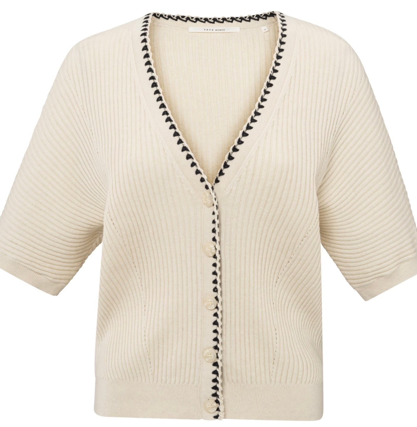 Yaya cream elbow sleeve cardigan with anthracite stitching