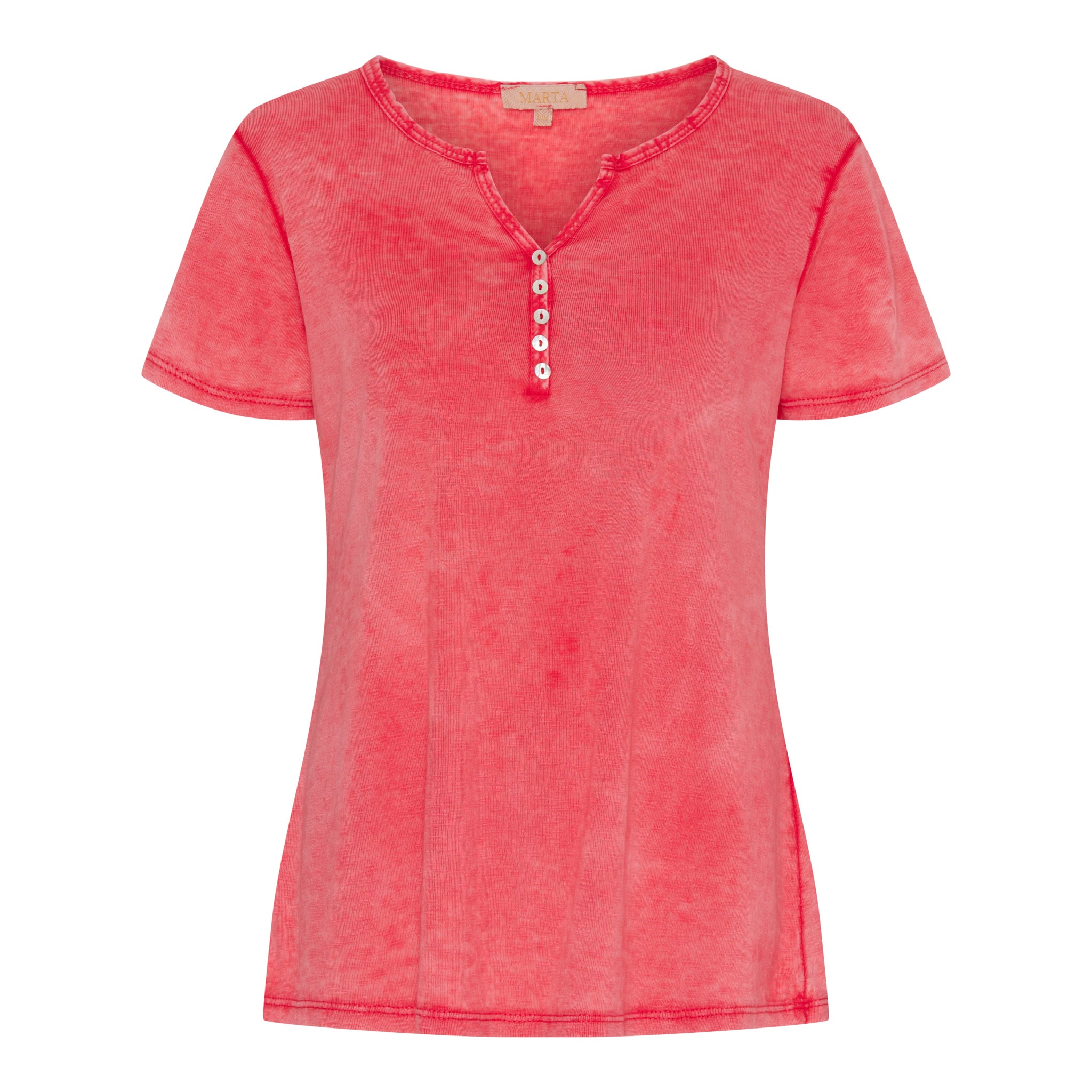 Marta red cotton t-shirt with button detail