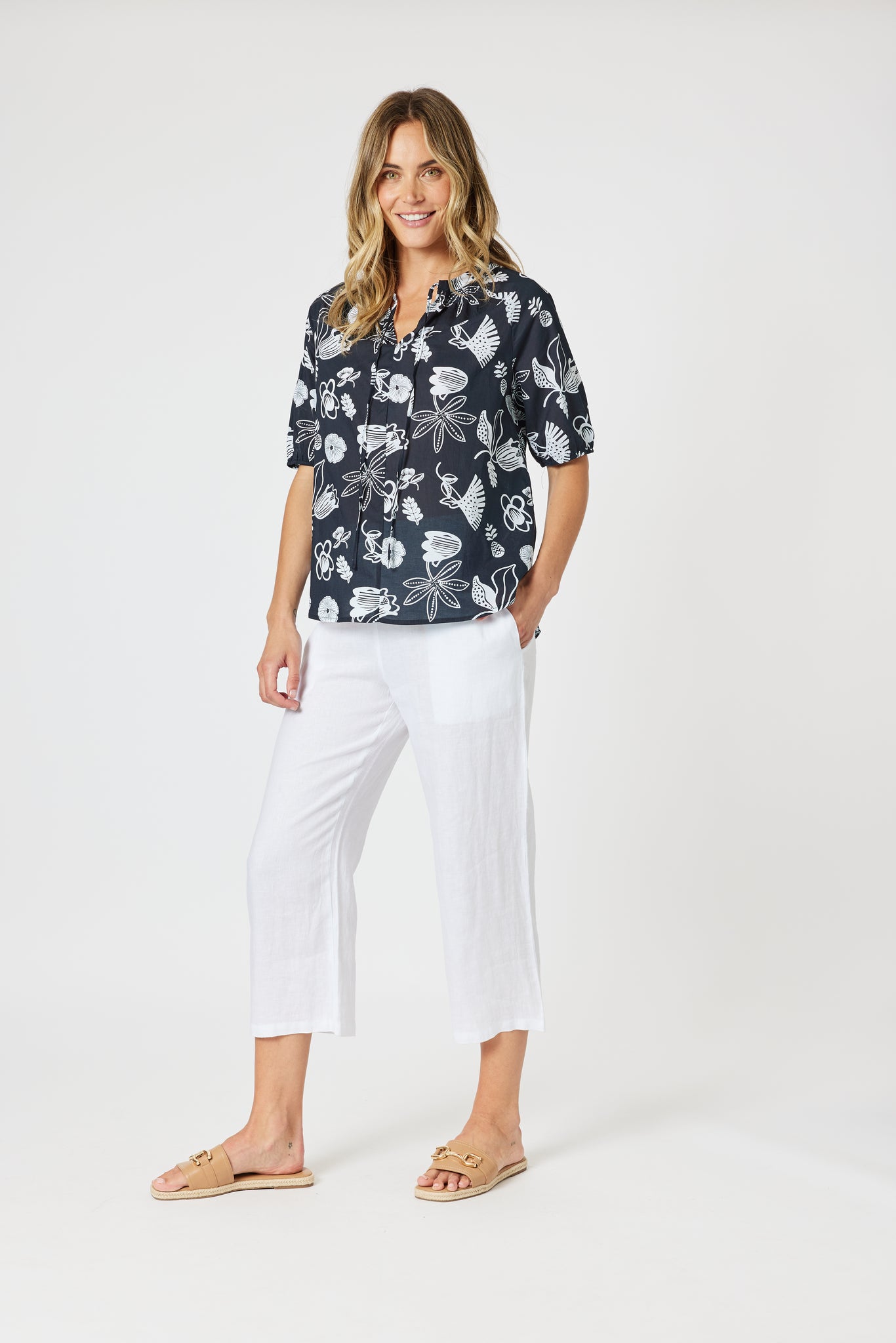 Gordon Smith navy and white printed blouse