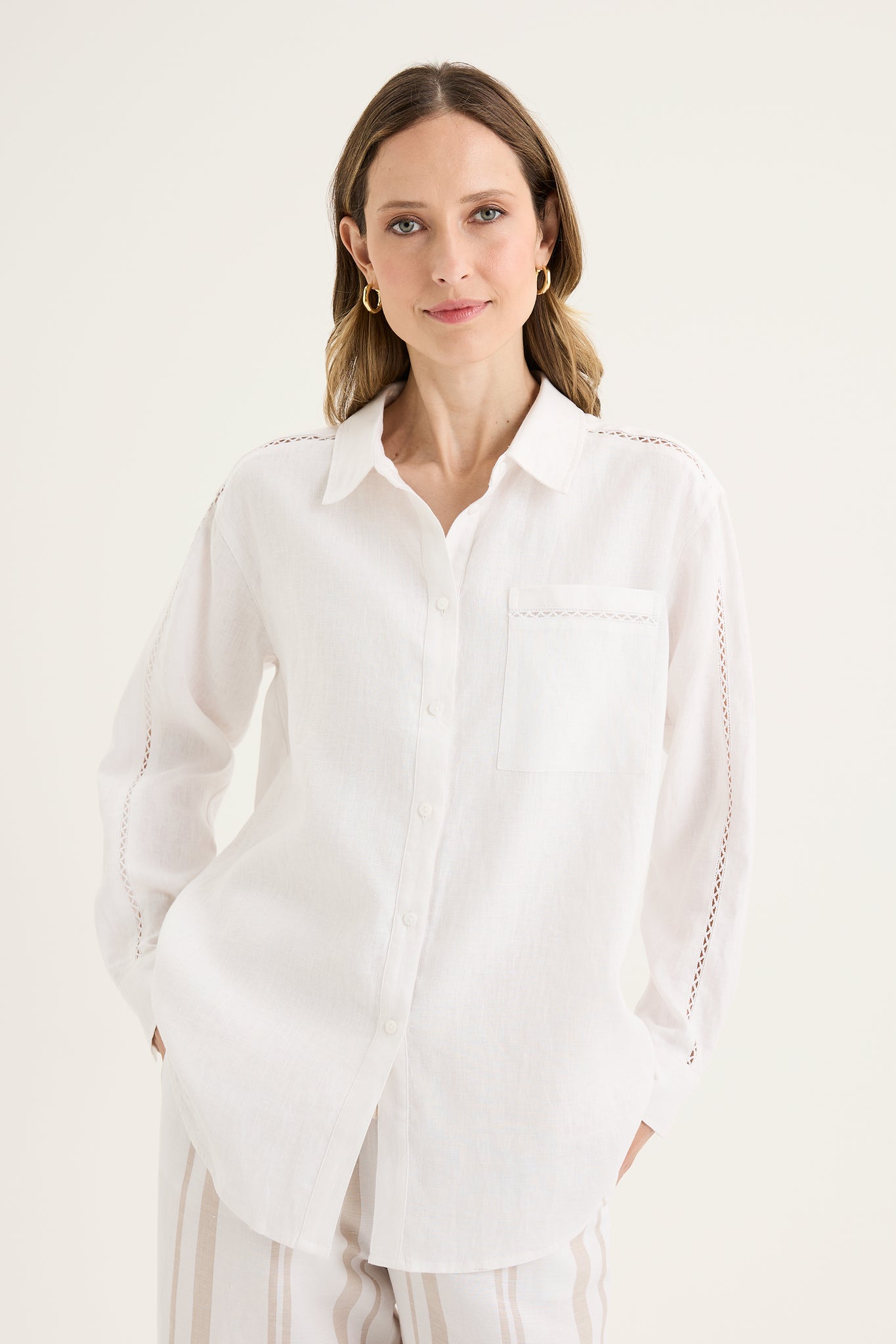 Yarra Trail super soft white collared shirt with embroidery cut out detail